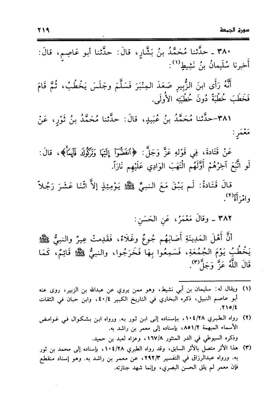 381 - حدثنا محمد بن عبيد قال حدثنا محمد بن ثور عن معمر