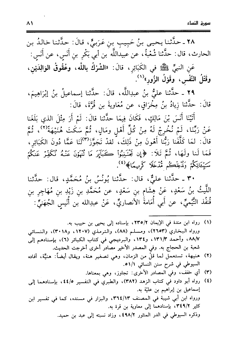 28 - حدثنا يحيى بن حبيب بن عربي قال حدثنا خالد بن الحارث قال حدثنا شعبة عن عبيد الله بن ابي بكر بن انس عن انس