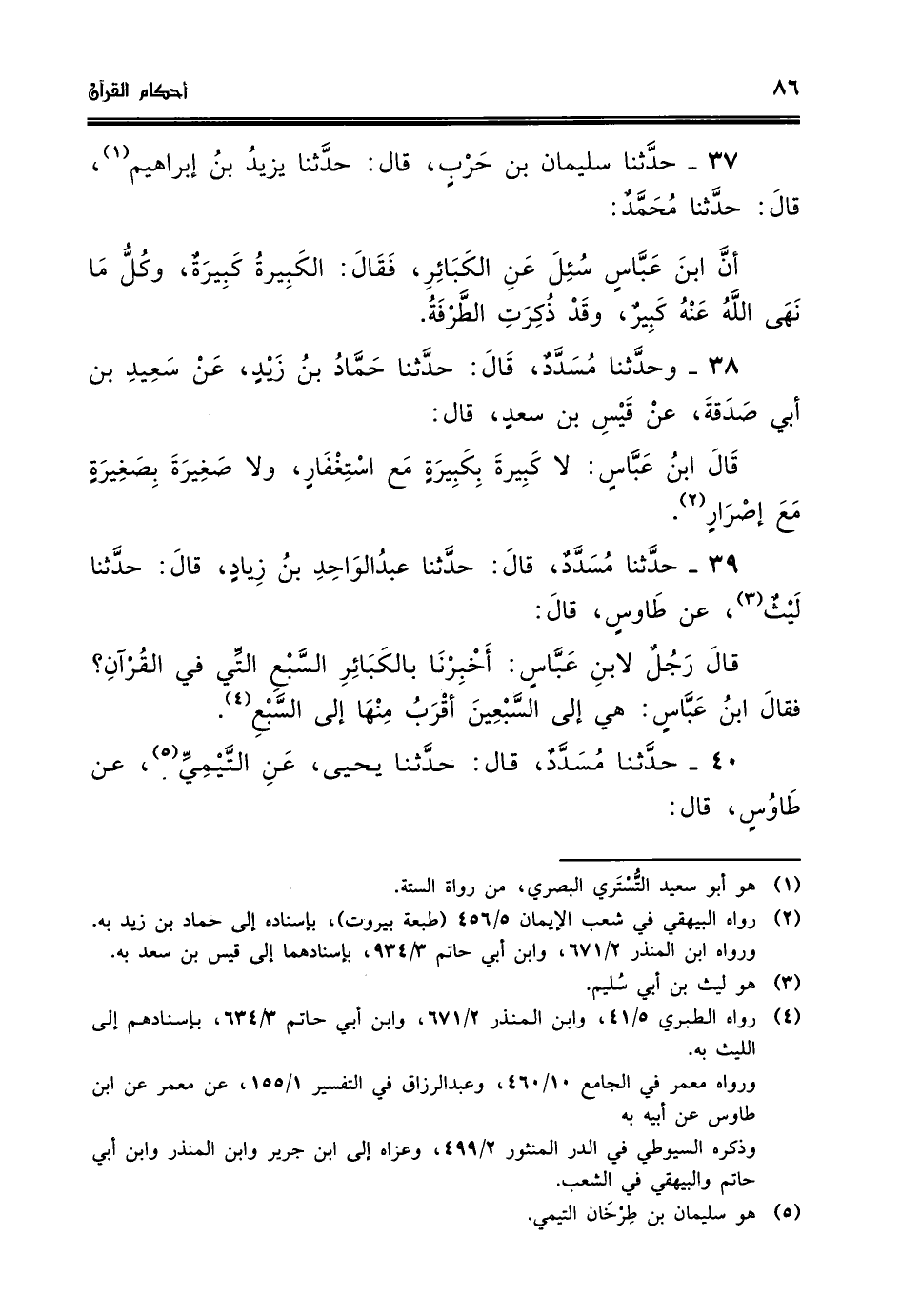 37 - حدثنا سليمان بن حرب قال حدثنا يزيد بن ابراهيم قال حدثنا محمد