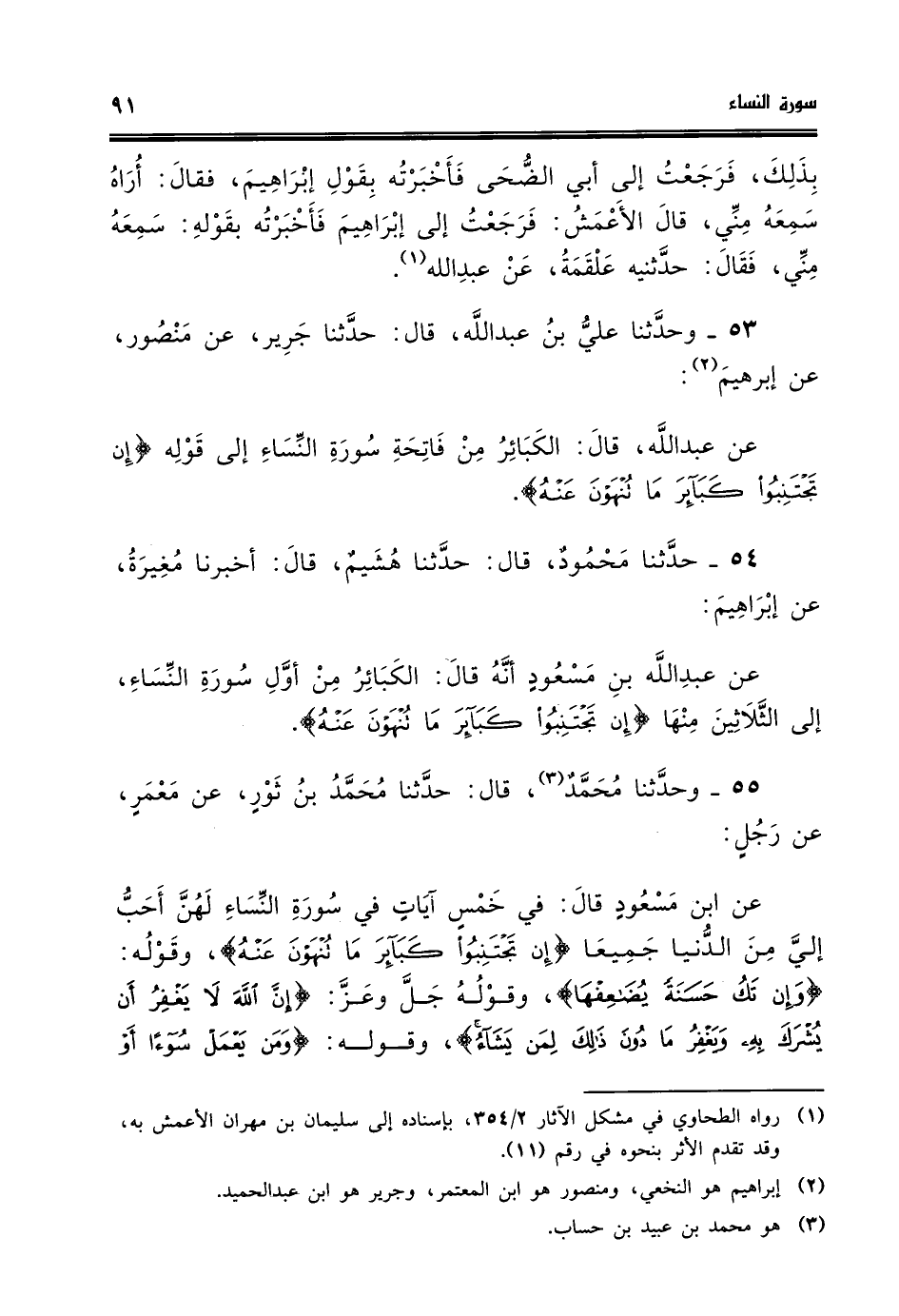 عن عبد الله قال الكبائر من فاتحة سورة النساء الى قوله تجنبوا كبائر ماتهون عنه