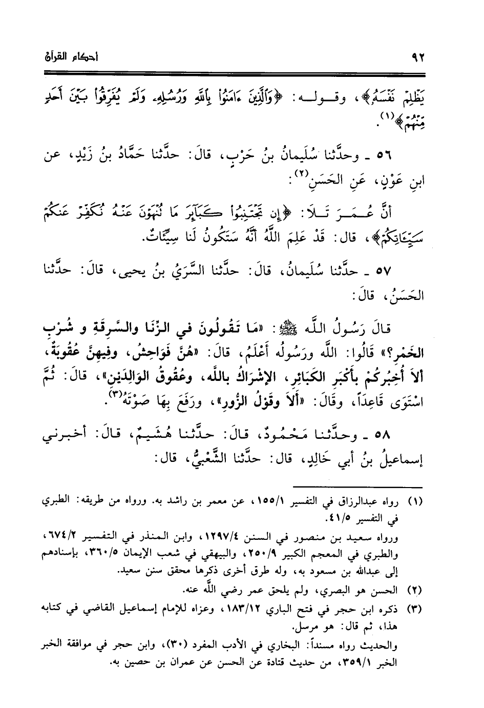 56 - وحدثنا سليمان بن حرب قال حدثنا حماد بن يزيد عن ابن عون عن الحسن