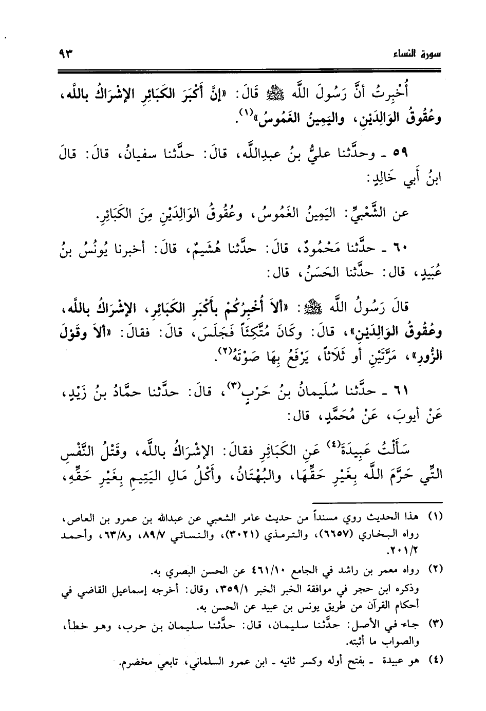 عن الشعبي اليمين الغموس وعقوق الوالدين من الكبائر