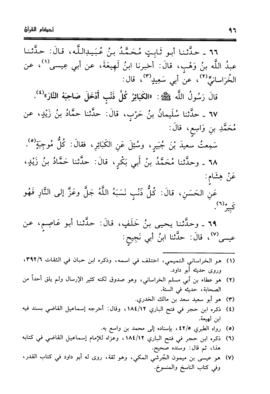 69 - وحدثنا يحيى بن خلف قال حدثنا ابو عاصم عن عيسى قال حدثنا ابن ابي نجيح