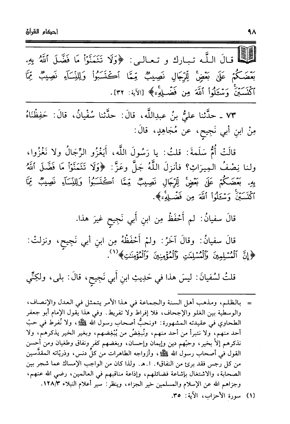 قال سفيان وقال اخر ولم احفظه من ابن ابي نجيح ونزلت ان المسلمين والمسلمات والمؤمنين والمؤمنات