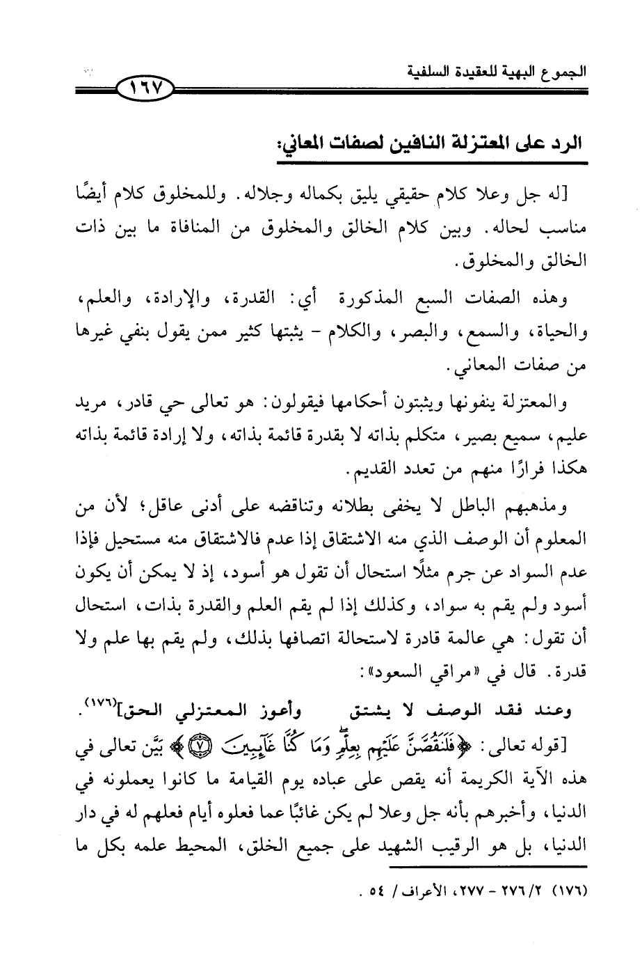 الرَّد على الْمُعْتَزلَة النافين لصفات الْمعَانِي: