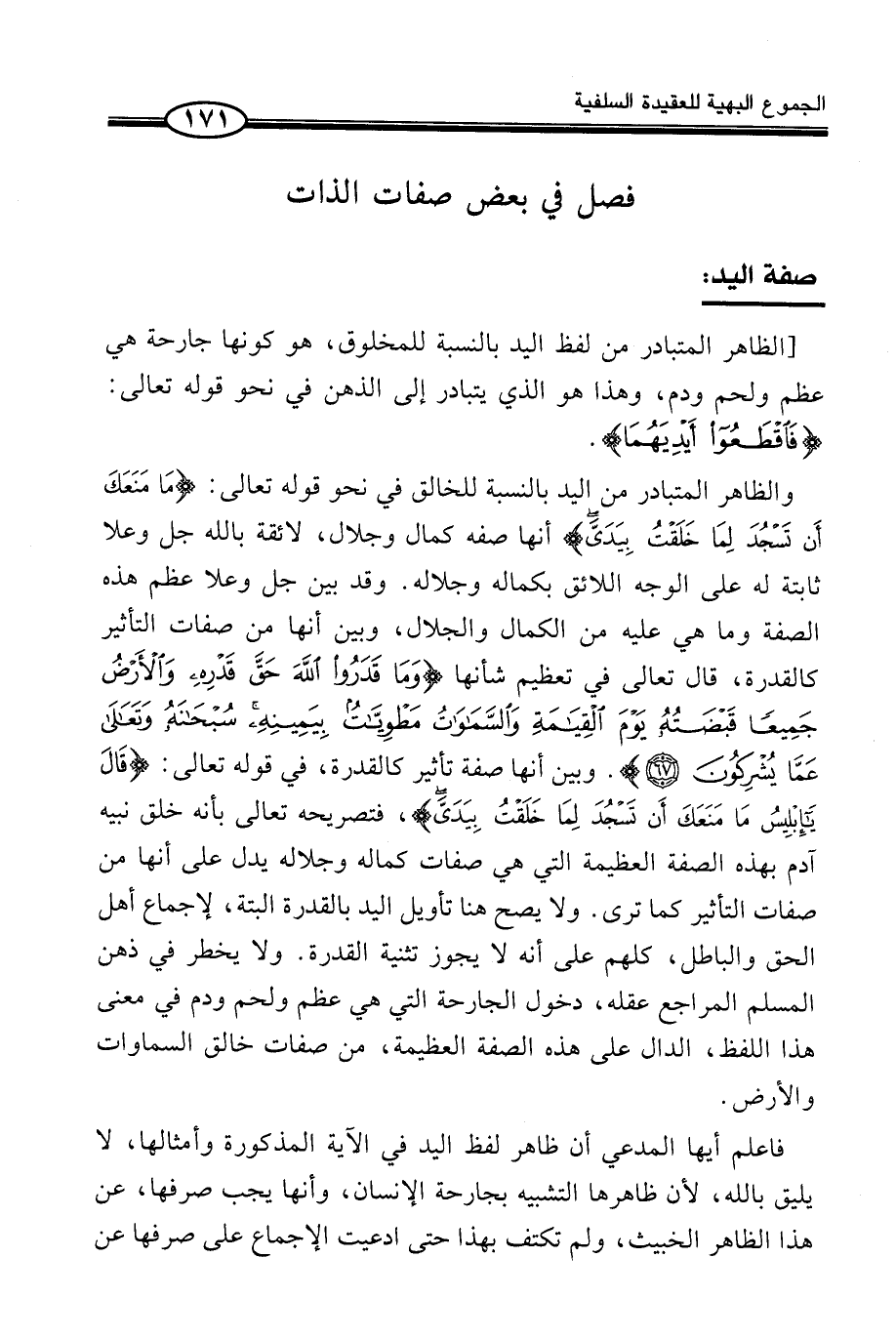فَاعْلَمْ أَيُّهَا الْمُدَّعِي أَنَّ ظَاهِرَ لَفْظِ الْيَدِ فِي الْآيَةِ الْمَذْكُورَةِ وَأَمْثَالَهَا، لَا يَلِيقُ بِاللَّهِ، لِأَنَّ ظَاهِرَهَا التَّشْبِيهُ بِجَارِحَةِ الْإِنْسَانِ، وَأَنَّهَا يَجِبُ صَرْفُهَا، عَنْ هَذَا الظَّاهِرِ الْخَبِيثِ، وَلَمْ تَكْتَفِ بِهَذَا حَتَّى ادَّعَيْتَ الْإِجْمَاعَ عَلَى صَرْفِهَا عَنْ