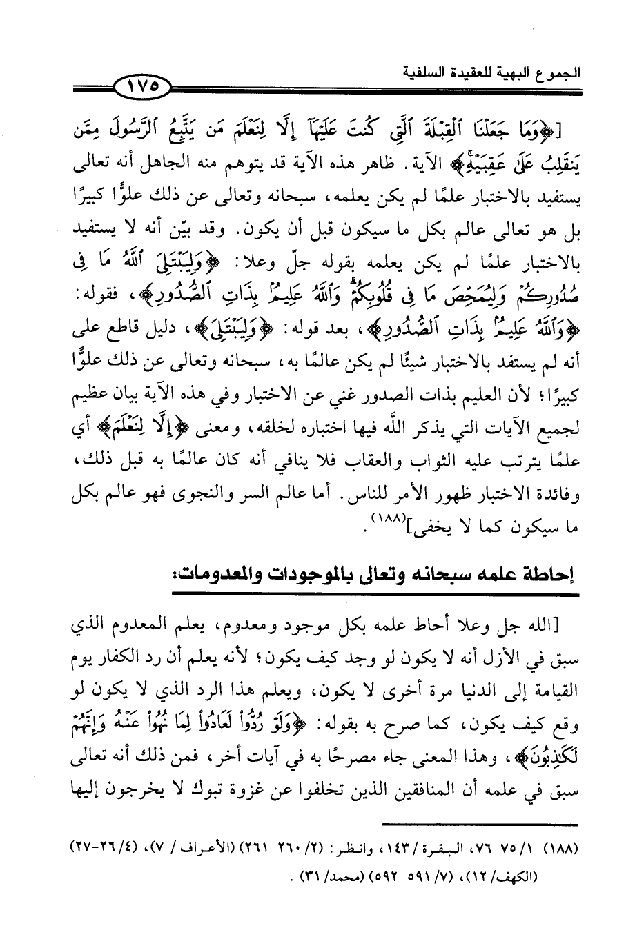 (¬1) - 1/75 - 76، الْبَقَرَة /143، وَانْظُر: (2/260 - 261) (الْأَعْرَاف / 7) ، (4/26-27) (الْكَهْف/12) ، (7/591 - 592) (مُحَمَّد/31) .