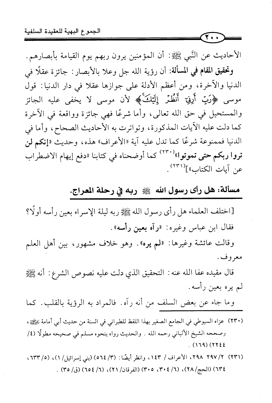 - مَسْأَلَة: هَلْ رَأَى رَسُولَ اللَّهِ - صَلَّى اللَّهُ عَلَيْهِ وَسَلَّمَ - ربه فِي رحْلَة الْمِعْرَاج.