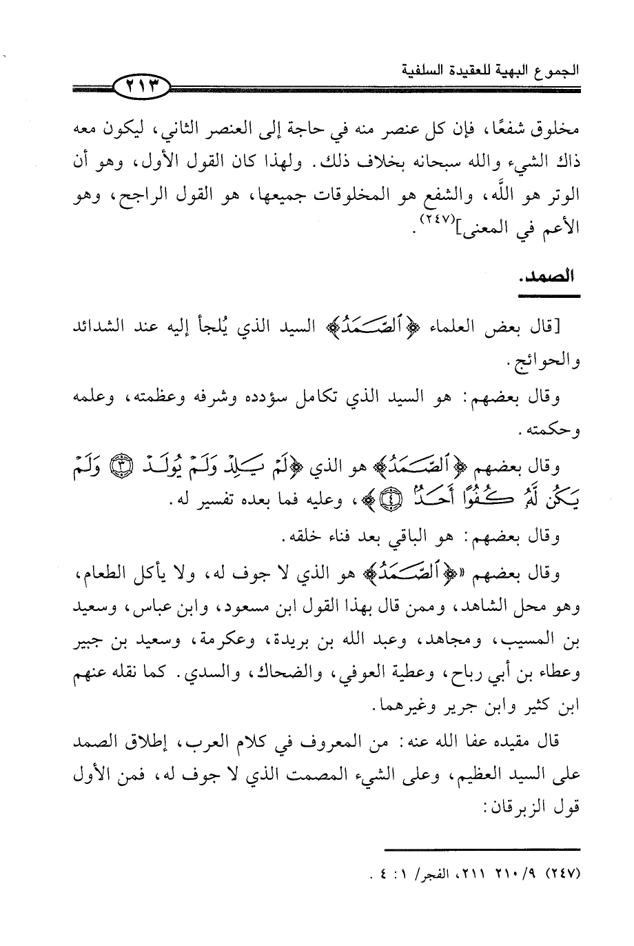 [قَالَ بَعْضُ الْعُلَمَاءِ {الصَّمَدُ} السَّيِّدُ الَّذِي يُلجأ إِلَيْهِ عِنْدَ الشَّدَائِدِ وَالْحَوَائِجِ.