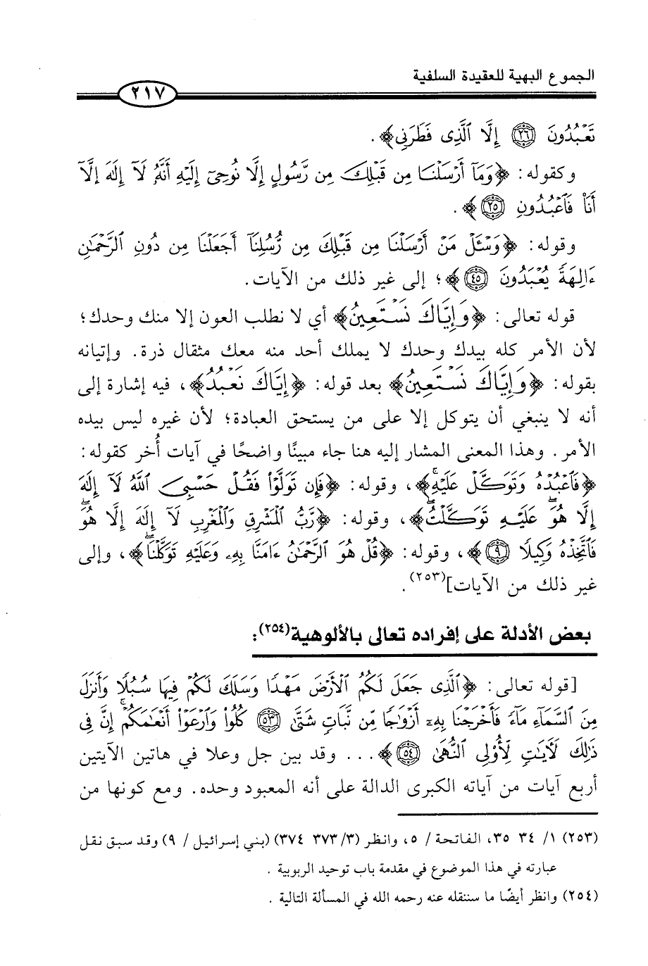 (¬1) - 1/ 34 - 35، الْفَاتِحَة / 5، وَانْظُر (3/373 - 374) (بني إِسْرَائِيل / 9) وَقد سبق نقل عِبَارَته فِي هَذَا الْمَوْضُوع فِي مُقَدّمَة بَاب تَوْحِيد الربوبية.