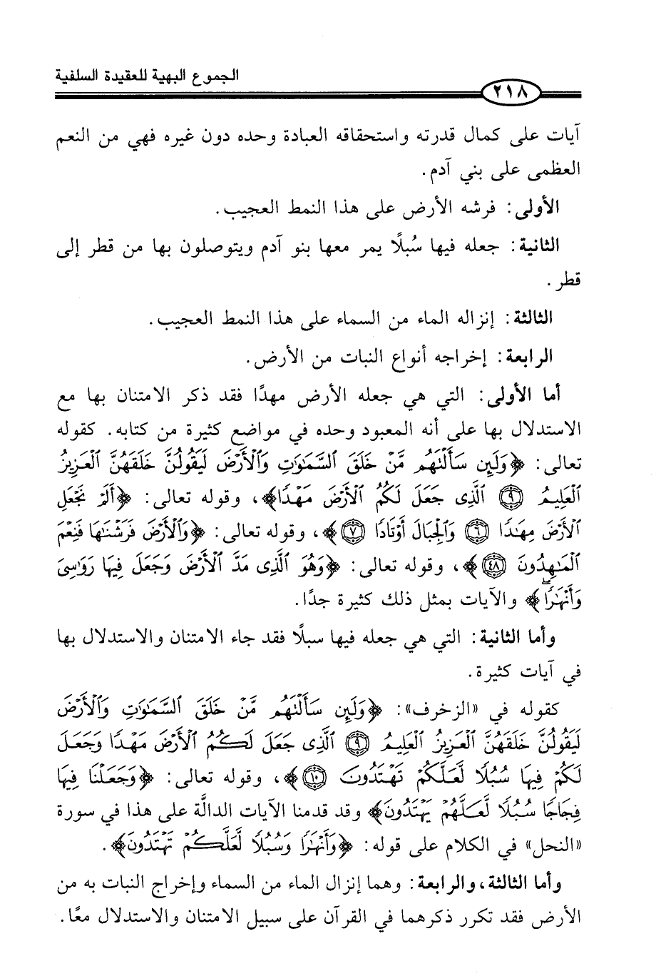 وَأَمَّا الثَّانِيَةُ: الَّتِي هِيَ جَعْلُهُ فِيهَا سُبُلًا فَقَدْ جَاءَ الِامْتِنَانُ وَالِاسْتِدْلَالُ بِهَا فِي آيَاتٍ كَثِيرَةٍ.