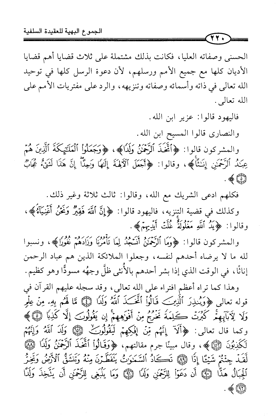 الْحُسْنَى وَصِفَاتِهِ الْعُلْيَا، فَكَانَتْ بِذَلِكَ مُشْتَمِلَةً عَلَى ثَلَاثِ قَضَايَا أَهَمِّ قَضَايَا الْأَدْيَانِ كُلِّهَا مَعَ جَمِيعِ الْأُمَمِ وَرُسُلِهِمْ، لِأَنَّ دَعْوَةَ الرُّسُلِ كُلَّهَا فِي تَوْحِيدِ اللَّهِ تَعَالَى فِي ذَاتِهِ وَأَسْمَائِهِ وَصِفَاتِهِ وَتَنْزِيهِهِ، وَالرَّدِّ عَلَى مُفْتَرَيَاتِ الْأُمَمِ عَلَى اللَّهِ تَعَالَى.