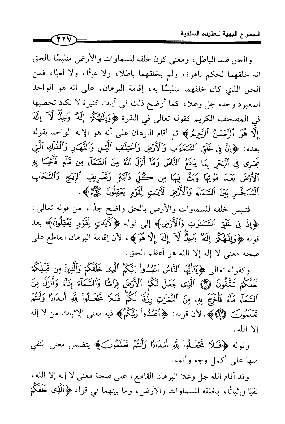وَقَدْ أَقَامَ اللَّهُ جَلَّ وَعَلَا الْبُرْهَانَ الْقَاطِعَ، عَلَى صِحَّةِ مَعْنَى لَا إِلَهَ إِلَّا اللَّهُ، نَفْيًا وَإِثْبَاتًا، بِخَلْقِهِ لِلسَّمَاوَاتِ وَالْأَرْضِ، وَمَا بَيْنَهُمَا فِي قَوْلِهِ {الَّذِىْ خَلَقَكُمْ