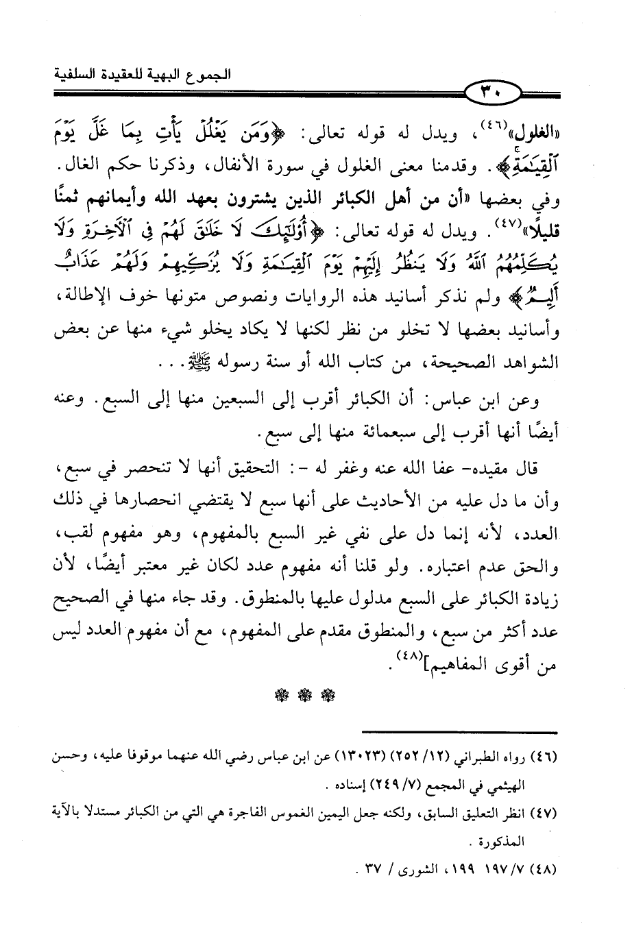 (¬2) - انْظُر التَّعْلِيق السَّابِق، وَلكنه جعل الْيَمين الْغمُوس الْفَاجِرَة هِيَ الَّتِي من الْكَبَائِر مستدلا بِالْآيَةِ الْمَذْكُورَة.