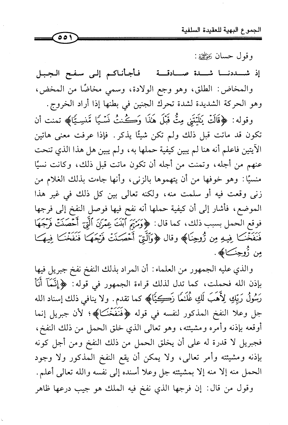 وَقَوْلُهُ: {قَالَتْ يالَيْتَنِى مِتُّ قَبْلَ هَذَا وَكُنتُ نَسْياً مَّنسِيّاً} تَمَنَّتْ أَنْ تَكُونَ قَدْ مَاتَتْ قَبْلَ ذَلِكَ وَلَمْ تَكُنْ شَيْئًا يُذْكَرُ. فَإِذَا عَرَفْتَ مَعْنَى هَاتَيْنِ الْآيَتَيْنِ فَاعْلَمْ أَنَّهُ هُنَا لَمْ يُبَيِّنْ كَيْفِيَّةَ حَمْلِهَا بِهِ، وَلَمْ يُبَيِّنْ هَلْ هَذَا الَّذِي تَنَحَّتْ عَنْهُمْ مِنْ أَجْلِهِ، وَتَمَنَّتْ مِنْ أَجْلِهِ أَنْ تَكُونَ مَاتَتْ قَبْلَ ذَلِكَ، وَكَانَتْ نَسْيًا مَنْسِيًّا: وَهُوَ خَوْفُهَا مِنْ أَنْ يَتَّهِمُوهَا بِالزِّنَى، وَأَنَّهَا جَاءَتْ بِذَلِكَ الْغُلَامِ مِنْ زِنًى وَقَعَتْ فِيهِ أَوْ سَلِمَتْ مِنْهُ، وَلَكِنَّهُ تَعَالَى بَيَّنَ كُلَّ ذَلِكَ فِي غَيْرِ هَذَا الْمَوْضِعِ، فَأَشَارَ إِلَى أَنَّ كَيْفِيَّةَ حَمْلِهَا أَنَّهُ نَفَحَ فِيهَا فَوَصَلَ النَّفْخُ إِلَى فَرْجِهَا فَوَقَعَ الْحَمْلُ بِسَبَب ذَلِك، كَمَا قَالَ: {وَمَرْيَمَ ابْنَةَ عِمْرَانَ الَّتِى أَحْصَنَتْ فَرْجَهَا فَنَفَخْنَا فِيهِ مِن رُّوحِنَا} وَقَالَ {وَالَّتِى أَحْصَنَتْ فَرْجَهَا فَنَفَخْنَا فِيهَا مِن رُّوحِنَا} .