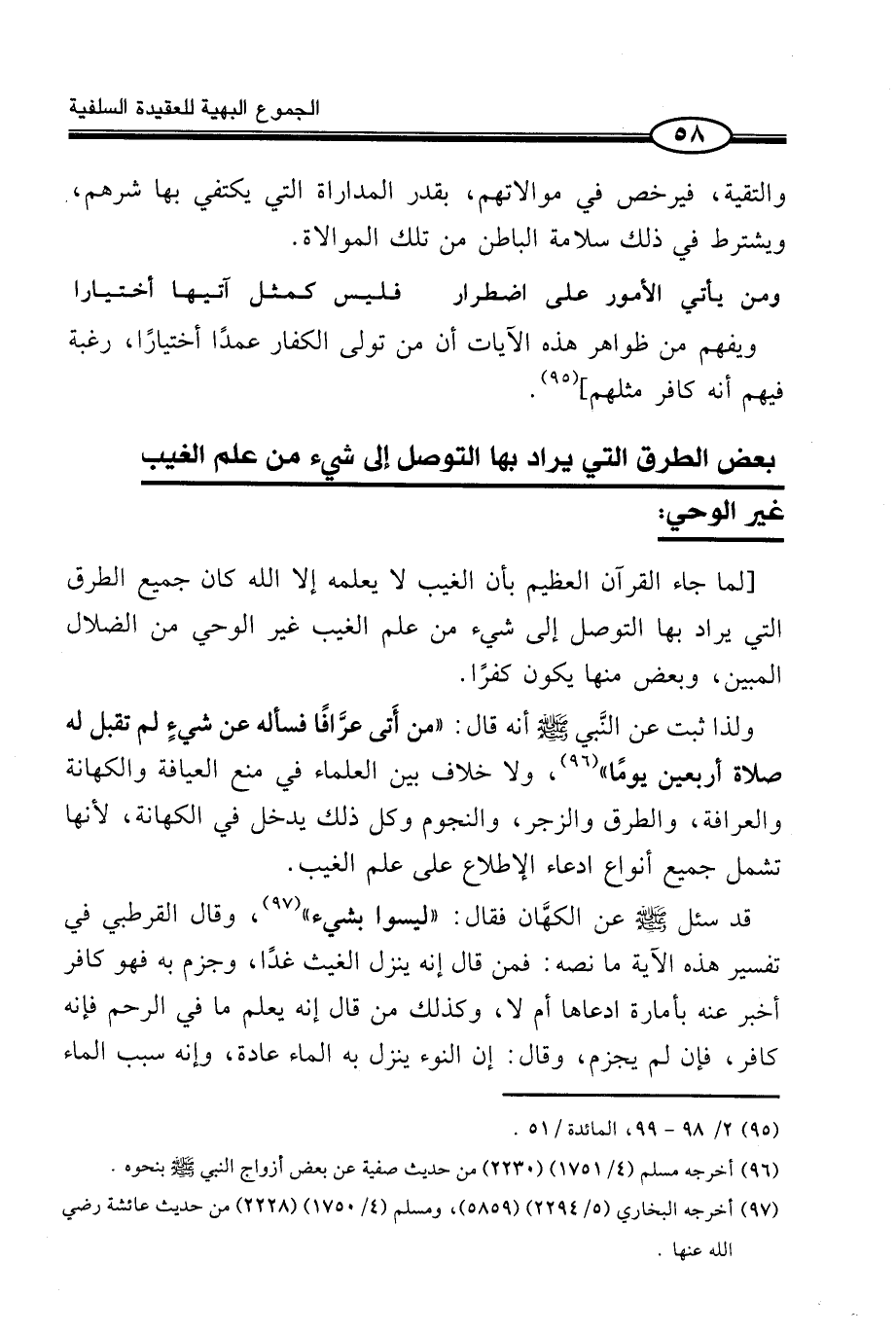 مِنْ عِلْمِ الْغَيْبِ غَيْرِ الْوَحْيِ مِنَ الضَّلَالِ الْمُبِينِ، وَبَعْضٌ مِنْهَا يَكُونُ كُفْرًا.
