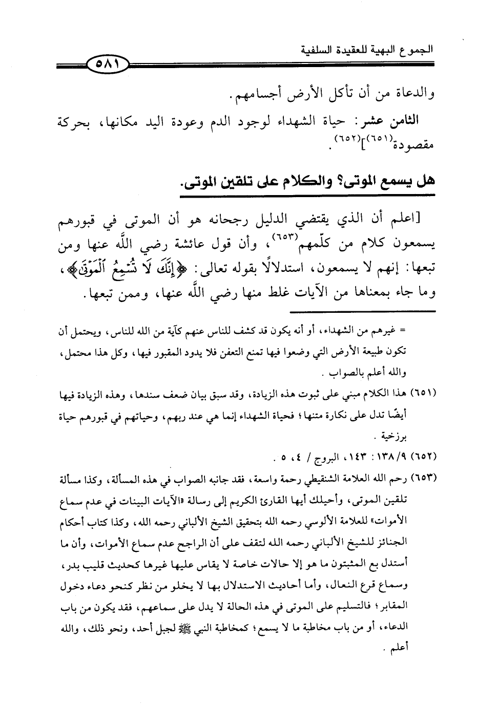 - هَل يسمع الْمَوْتَى؟ وَالْكَلَام على تلقين الْمَوْتَى.