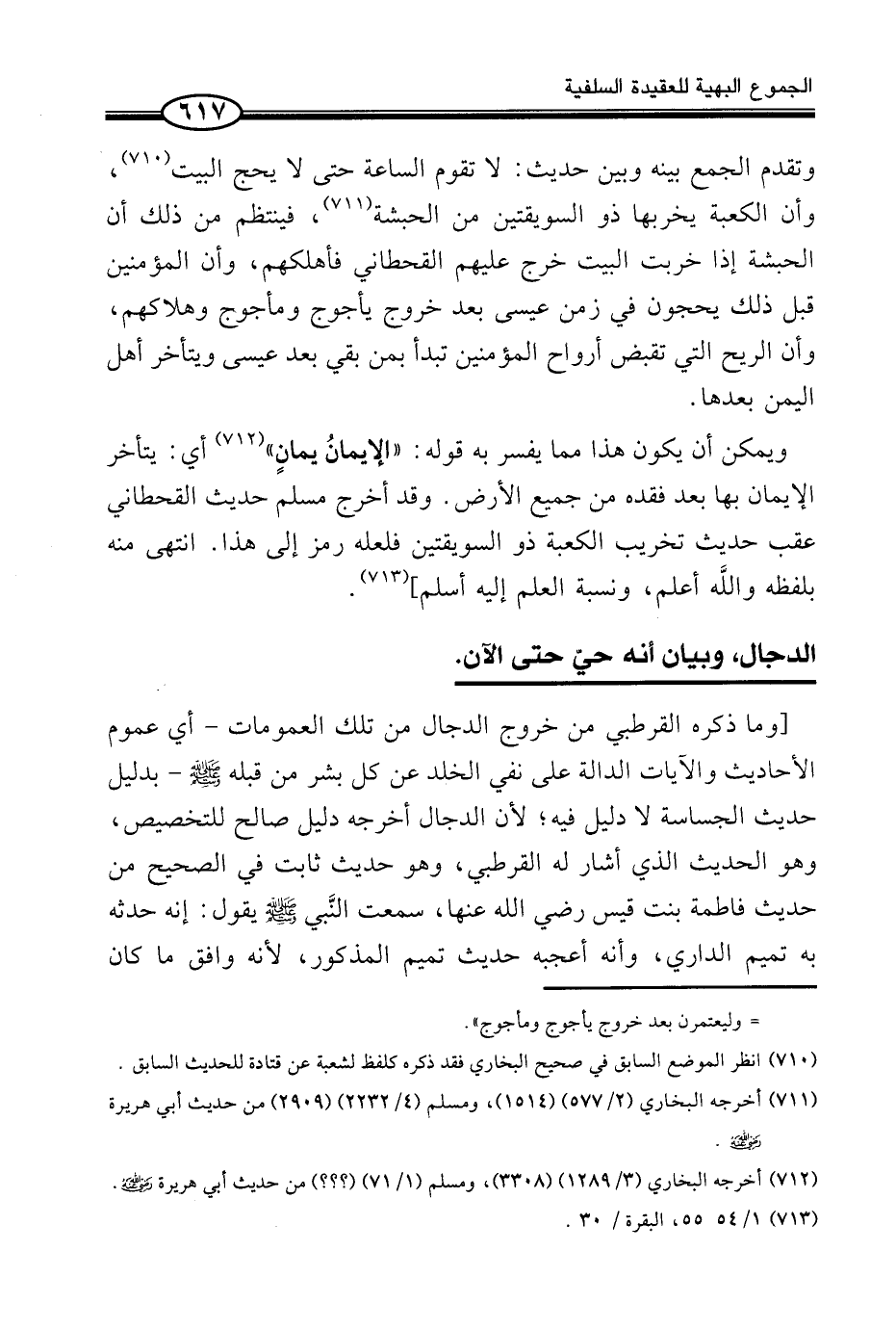 - الدَّجَّال، وَبَيَان أَنه حيّ حَتَّى الْآن.