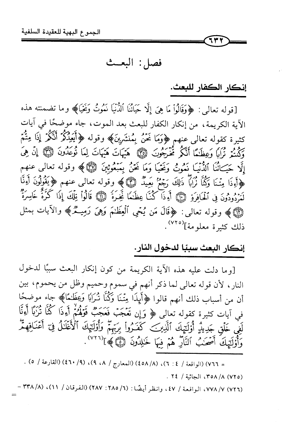 (¬2) - 7/778، الْوَاقِعَة / 47، وَانْظُر أَيْضا: (6/285: 287) (الْفرْقَان / 11) ، (8/338 - 339) (التغابن / 7) ، (8/643) (الْقِيَامَة / 36) .
