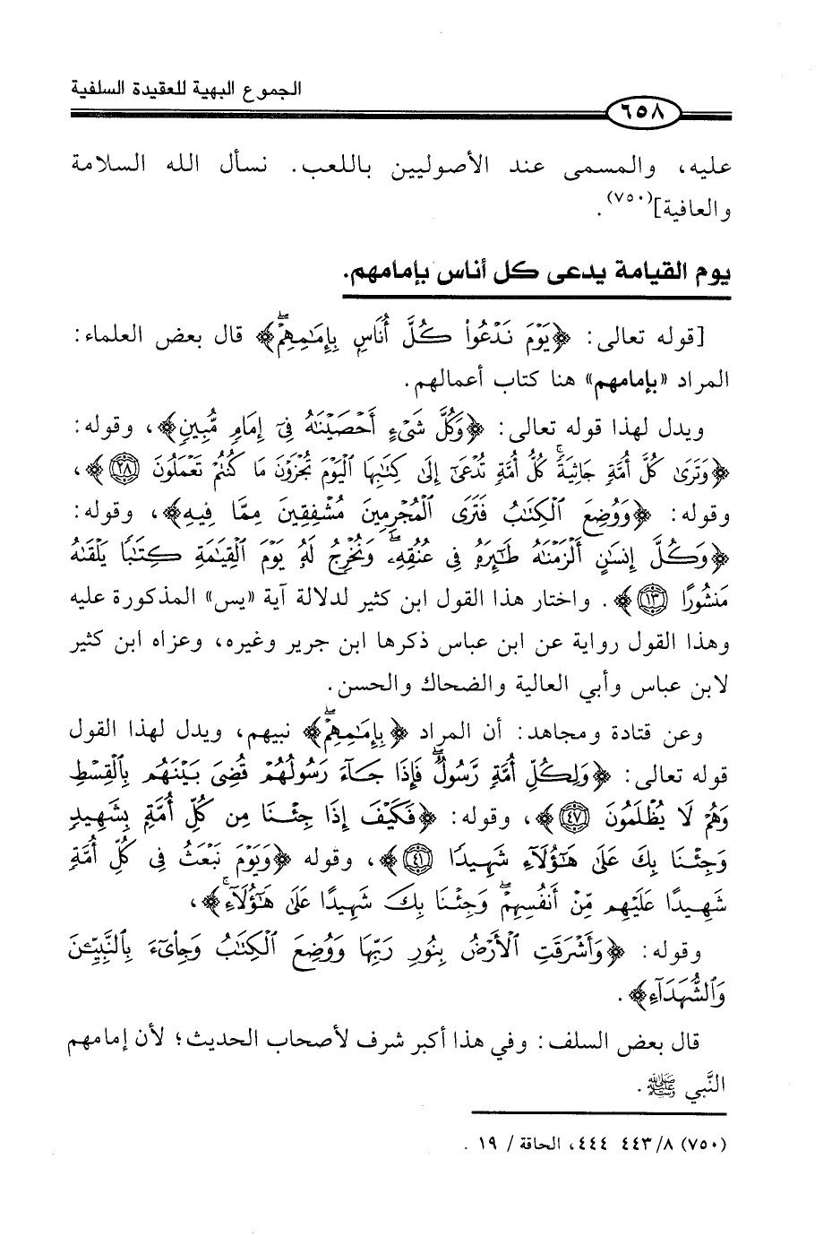 - يَوْم الْقِيَامَة يدعى كل أنَاس بإمامهم.