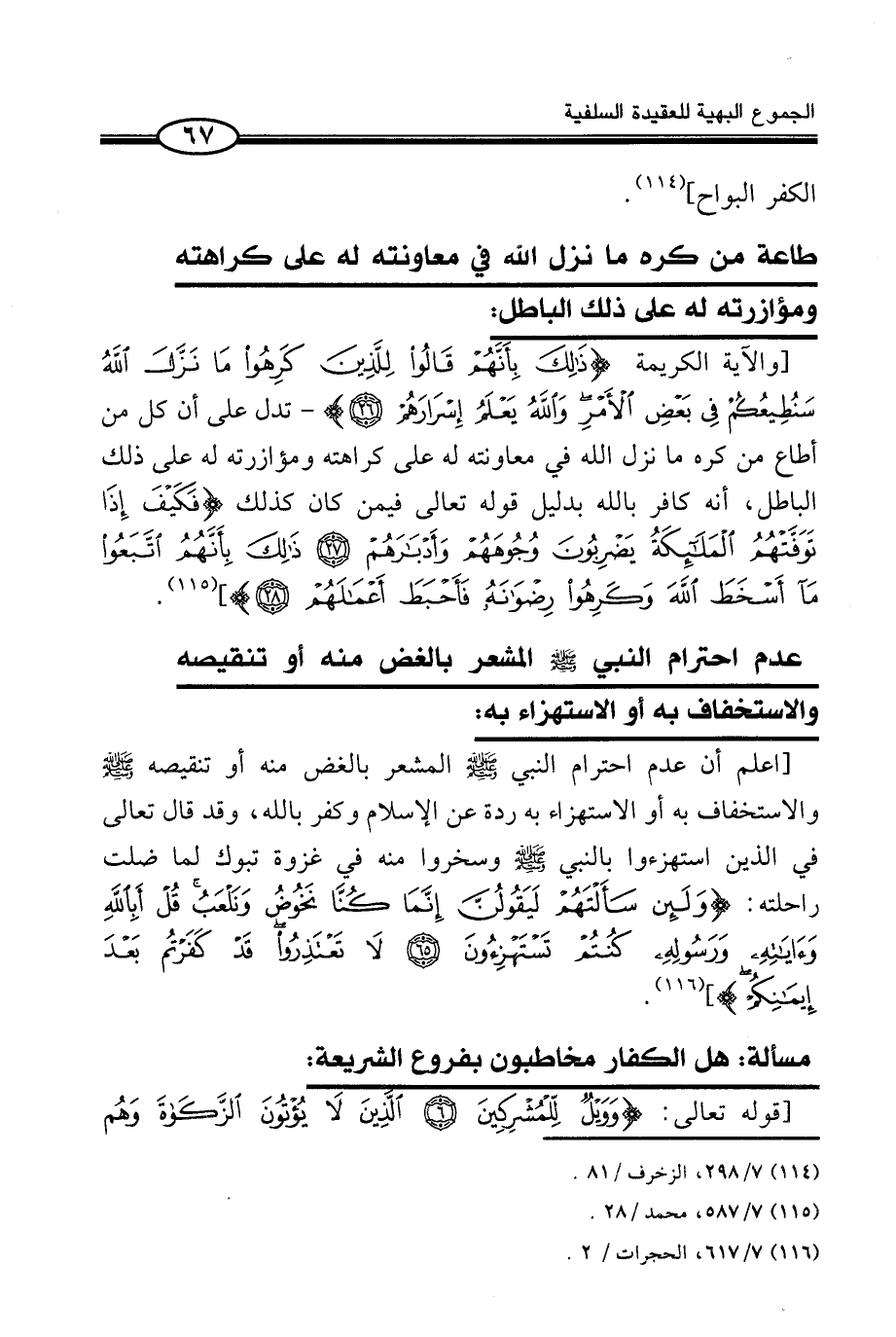 عَدَمَ احْتِرَامِ النَّبِيِّ صَلَّى اللَّهُ عَلَيْهِ وَسَلَّمَ الْمشعر بالغض مِنْهُ أَو تنقيصه وَالِاسْتِخْفَاف بِهِ أَو الِاسْتِهْزَاء بِهِ: