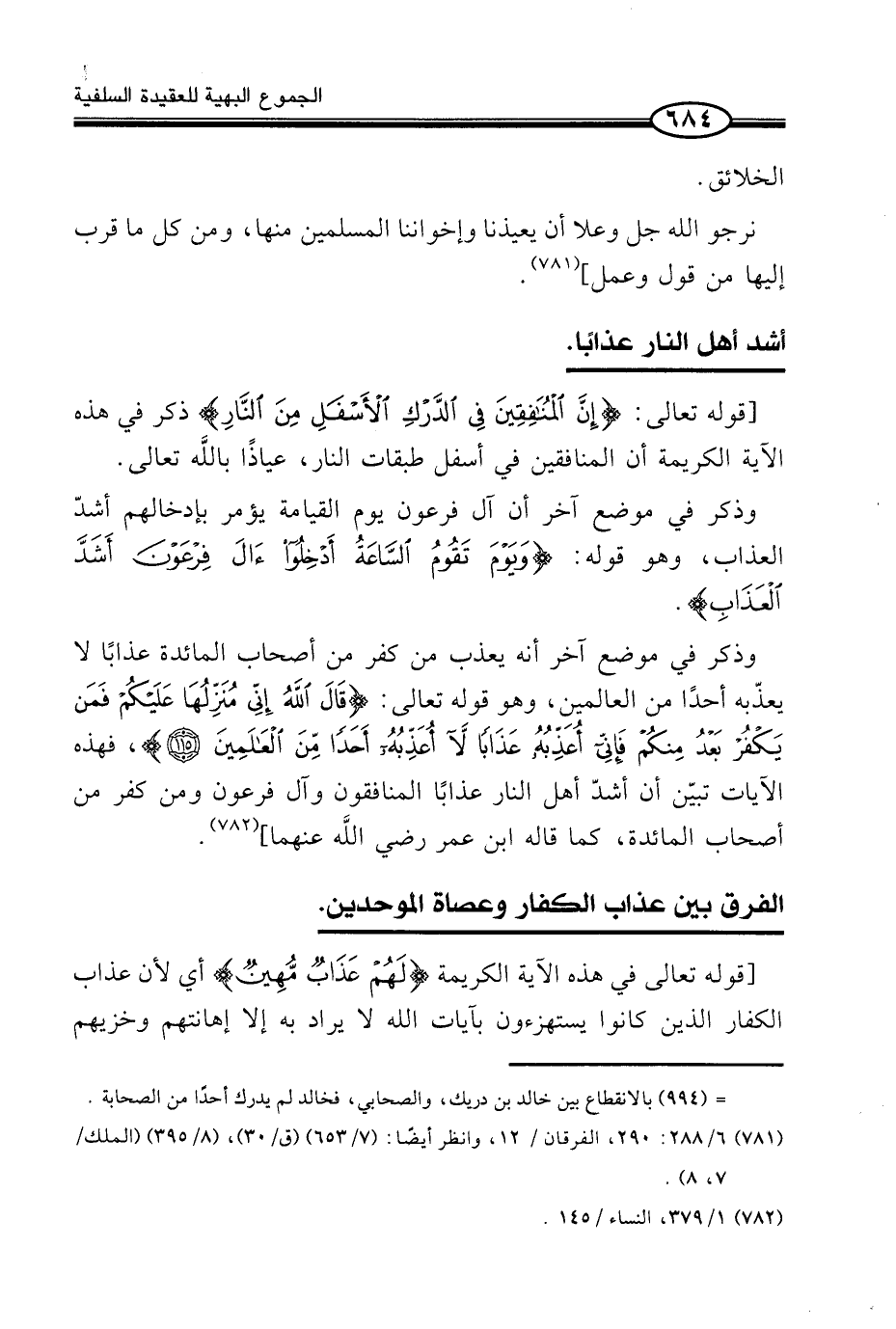 - الْفرق بَين عَذَاب الْكفَّار وعصاة الْمُوَحِّدين.