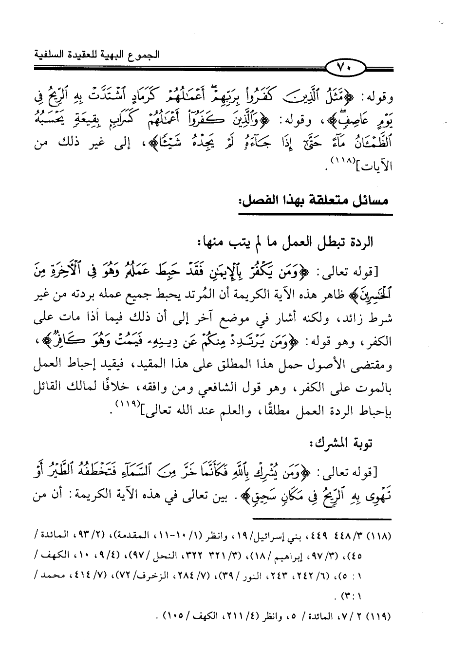 (¬1) - 3/448 - 449، بني إِسْرَائِيل/19، وَانْظُر (1/10-11، الْمُقدمَة) ، (2/93، الْمَائِدَة /45) ، (3/97، إِبْرَاهِيم /18) ، (3/321 - 322، النَّحْل /97) ، (4/9، 10، الْكَهْف /1: 5) ، (6/242، 243، النُّور /39) ، (7/284، الزخرف/72) ، (7/414، مُحَمَّد /1: 3) .