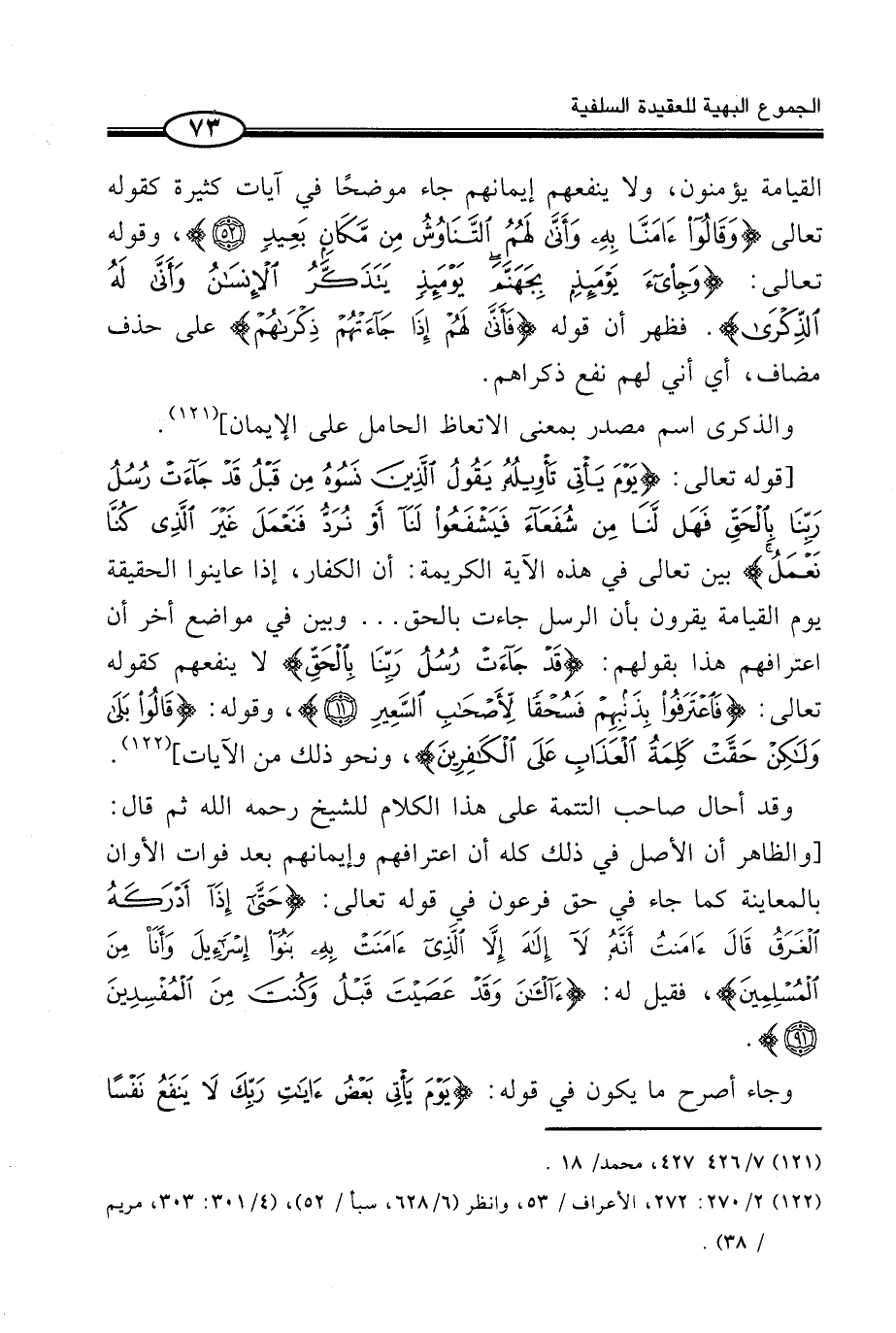 وَجَاءَ أَصْرَحَ مَا يَكُونُ فِي قَوْلِهِ: (يَوْمَ يَأْتِي بَعْضُ آيَاتِ رَبِّكَ لَا يَنْفَعُ نَفْساً