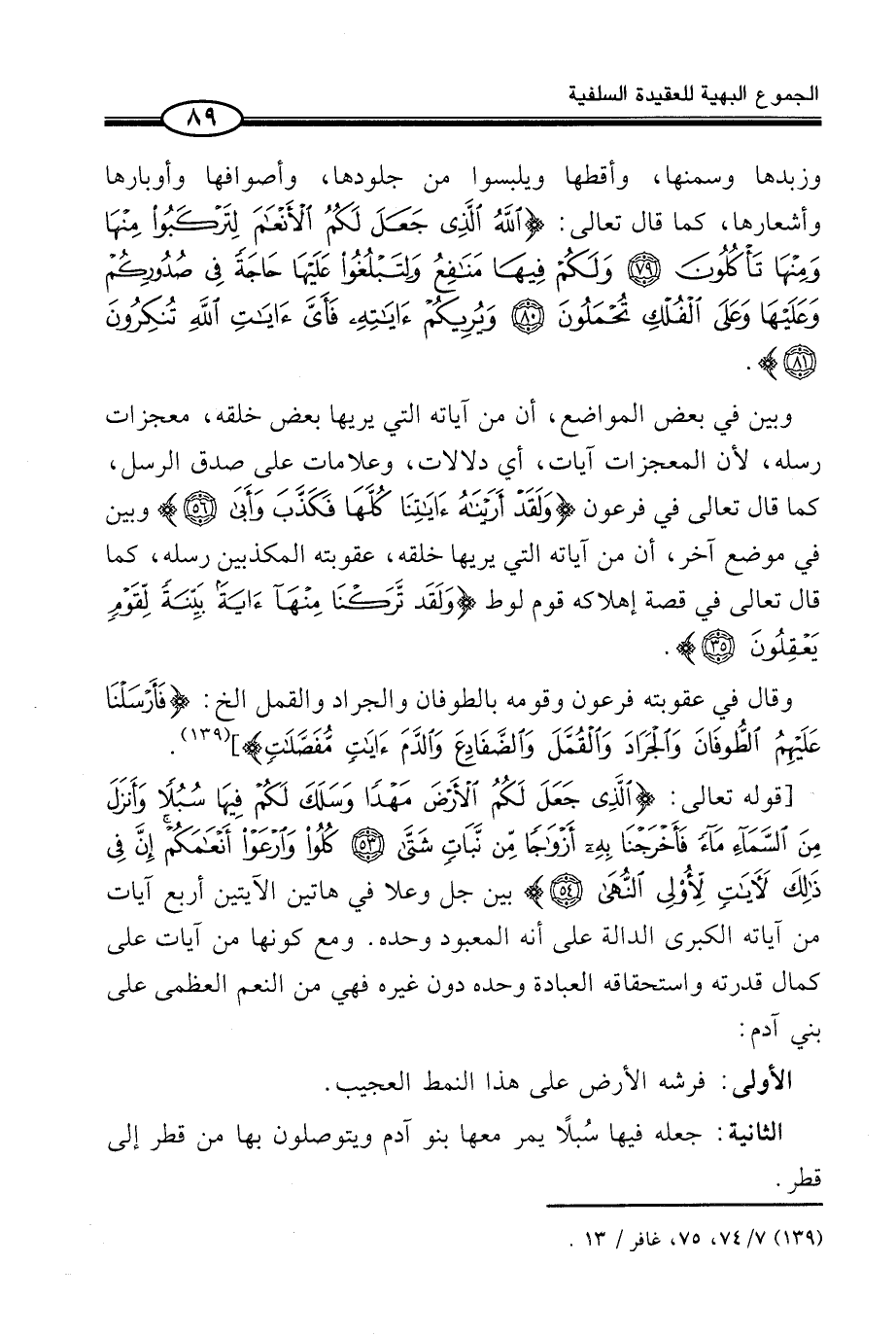 وَزُبْدِهَا وَسَمْنِهَا، وَأَقِطِهَا وَيَلْبَسُوا مِنْ جُلُودِهَا، وَأَصْوَافِهَا وَأَوْبَارِهَا وَأَشْعَارِهَا، كَمَا قَالَ تَعَالَى: (اللَّهُ الَّذِى جَعَلَ لَكُمُ الأَنْعَامَ لِتَرْكَبُواْ مِنْهَا وَمِنْهَا تَأْكُلُونَ وَلَكُمْ فِيهَا مَنَافِعُ وَلِتَبْلُغُواْ عَلَيْهَا حَاجَةً فِى صُدُورِكُمْ وَعَلَيْهَا وَعَلَى الْفُلْكِ تُحْمَلُونَ وَيُرِيكُمْ آيَاتِهِ فَأَىَّ آيَاتِ اللَّهِ تُنكِرُونَ) .