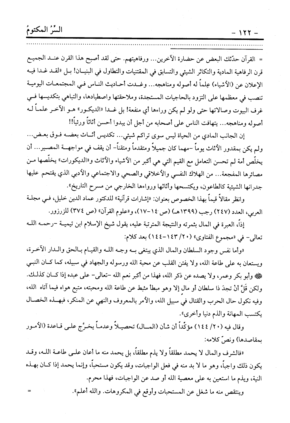 كتاب السر المكتوم في الفرق بين المالين المحمود والمذموم