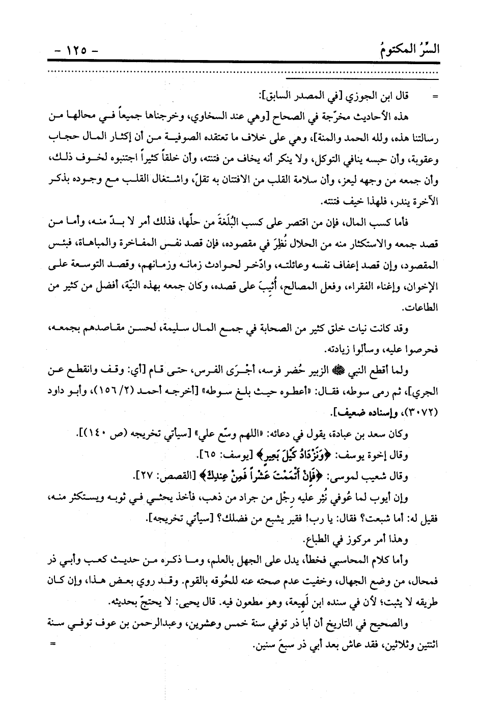 كتاب السر المكتوم في الفرق بين المالين المحمود والمذموم