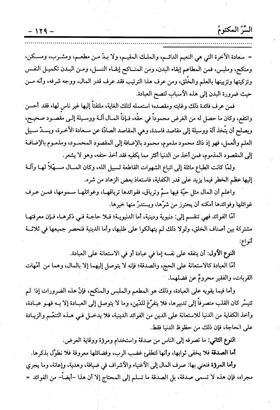 كتاب السر المكتوم في الفرق بين المالين المحمود والمذموم