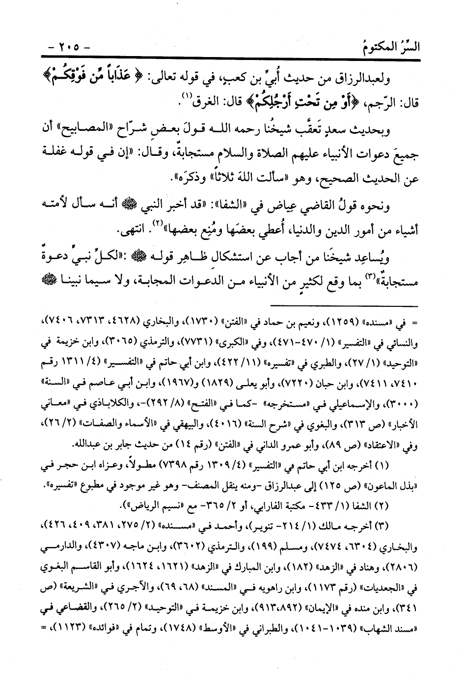 وبحديث سعدٍ تَعقَّب شيخُنا رحمه الله قولَ بعضِ شرّاح «المصابيح» أن جميعَ دعوات الأنبياء عليهم الصلاة والسلام مستجابةٌ، وقال: «إن في قوله غفلة عن الحديث الصحيح، وهو «سألت اللهَ ثلاثاً» وذكرَه» .
