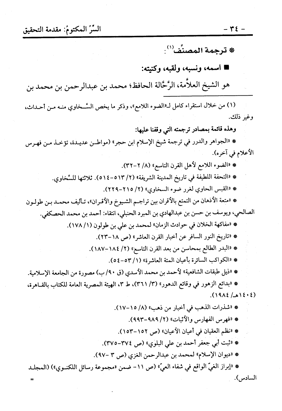 (¬1) من خلال استقراء كامل لـ «الضوء اللامع» ، وذكر ما يخص السَّخاوي منه من أحداث، وغير ذلك.