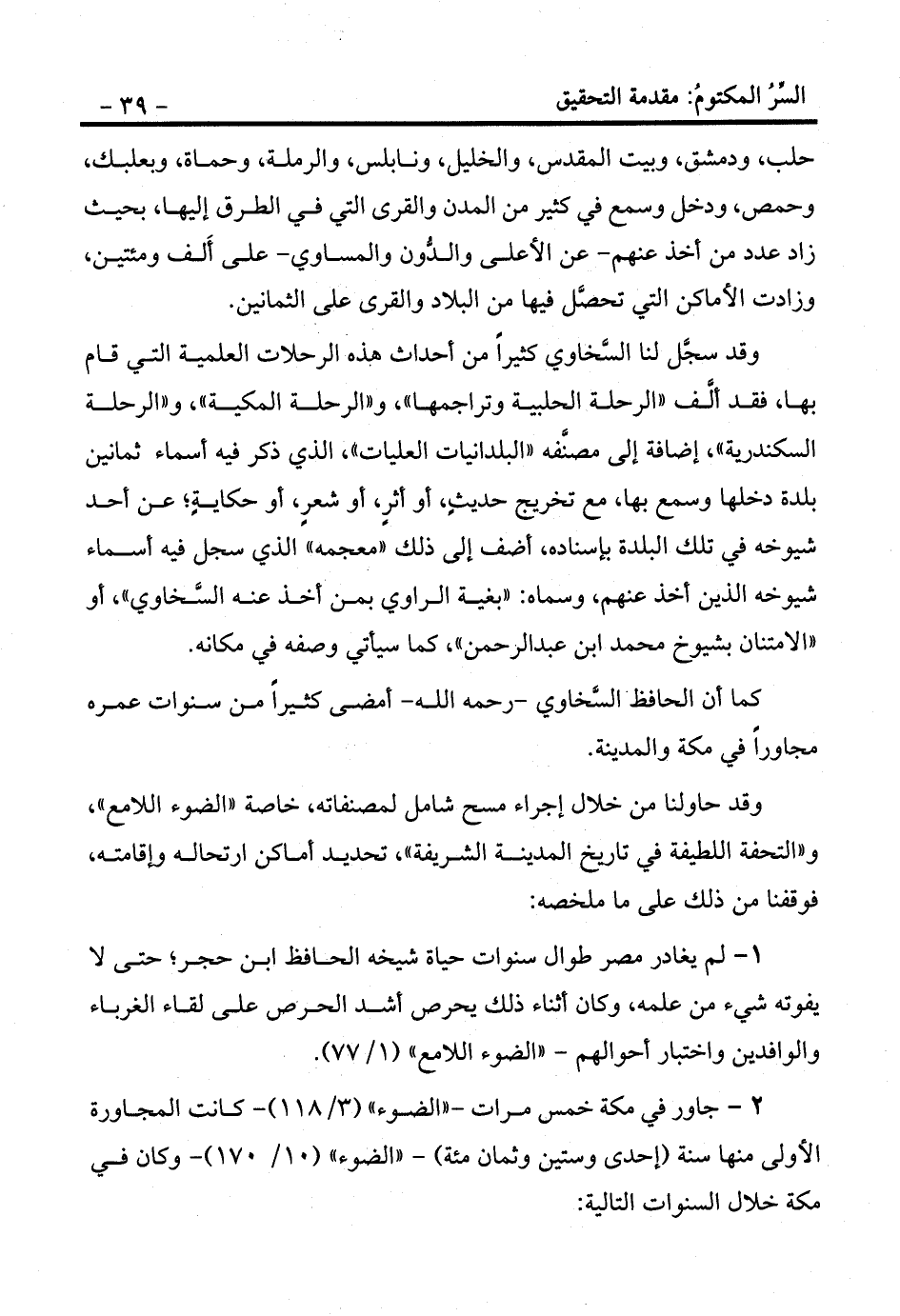 كما أن الحافظ السَّخاوي -رحمه الله- أمضى كثيراً من سنوات عمره مجاوراً في مكة والمدينة.