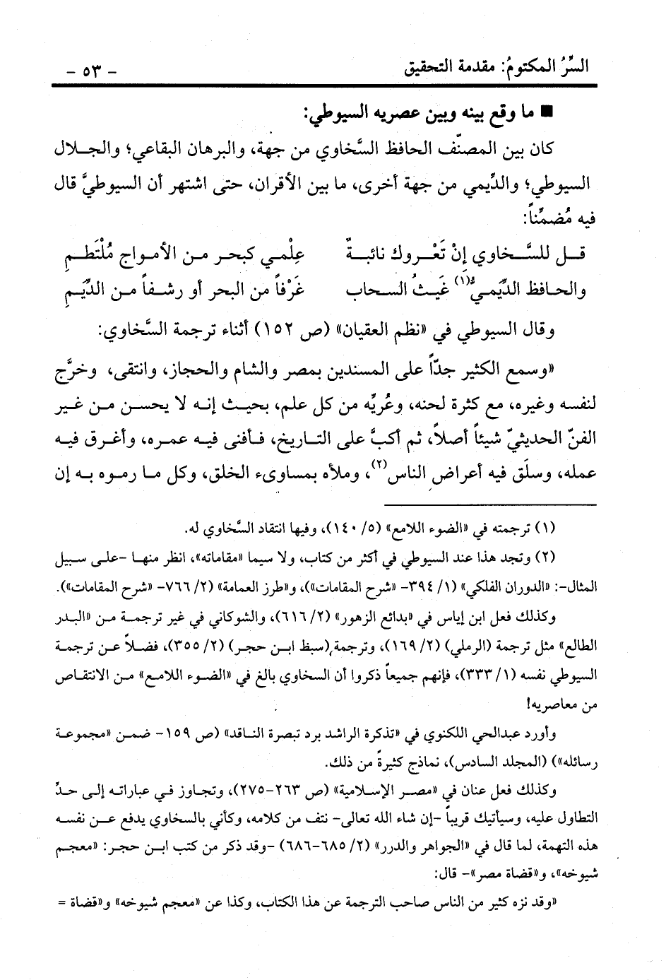 (¬2) وتجد هذا عند السيوطي في أكثر من كتاب، ولا سيما «مقاماته» ، انظر منها -على سبيل