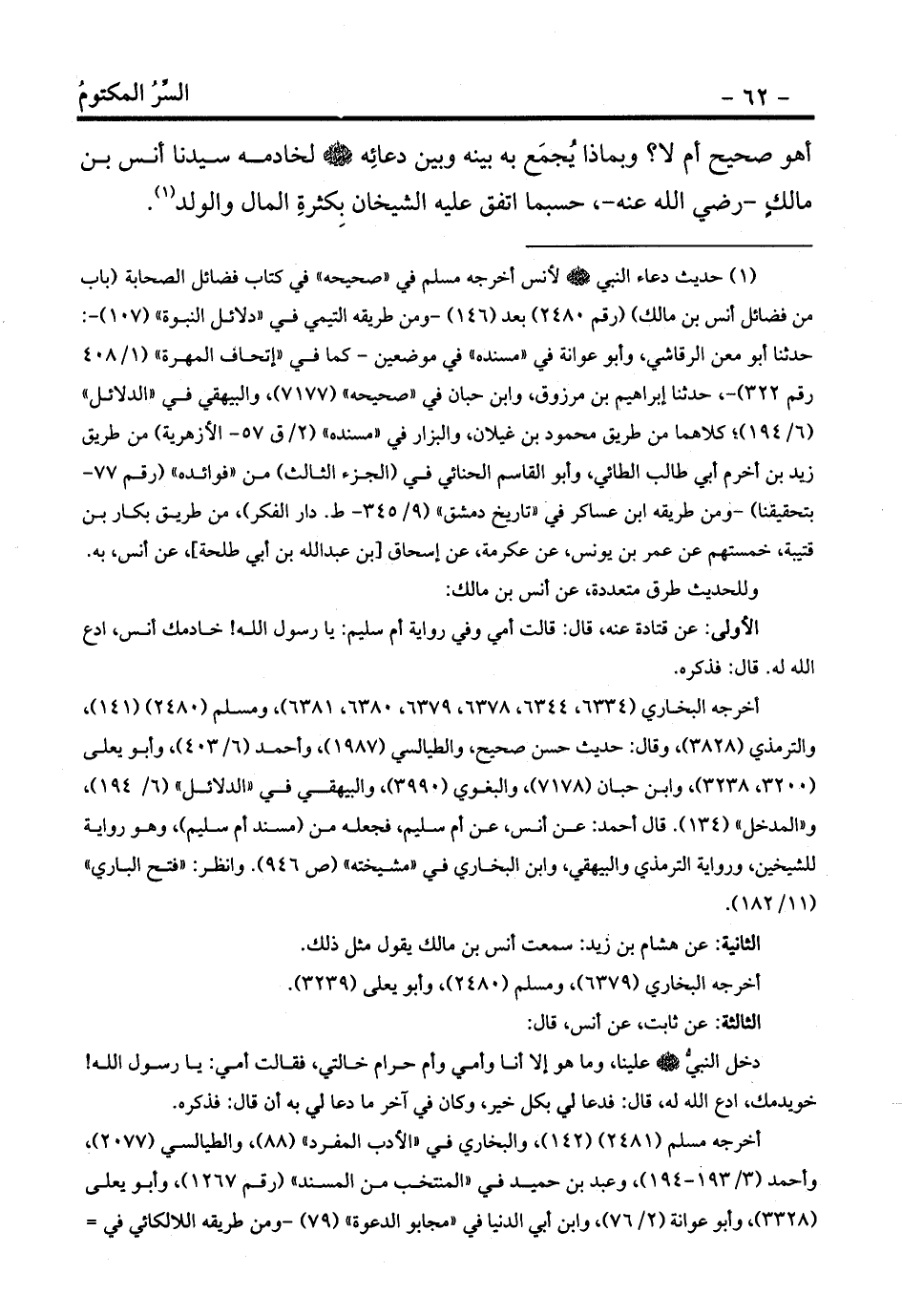 أهو صحيح أم لا؟ وبماذا يُجمَع به بينه وبين دعائِه - صلى الله عليه وسلم - لخادمه سيدنا أنس بن مالكٍ -رضي الله عنه-، حسبما اتفق عليه الشيخان بِكثرةِ المال والولد (¬1) .