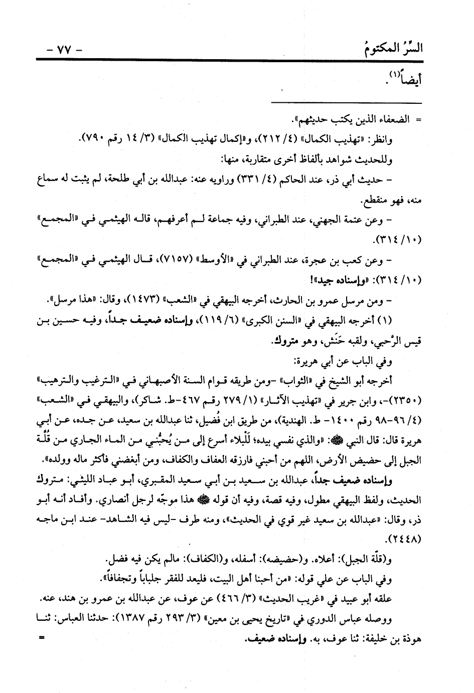 - ومن مرسل عمرو بن الحارث، أخرجه البيهقي في «الشعب» (1473) ، وقال: «هذا مرسل» .