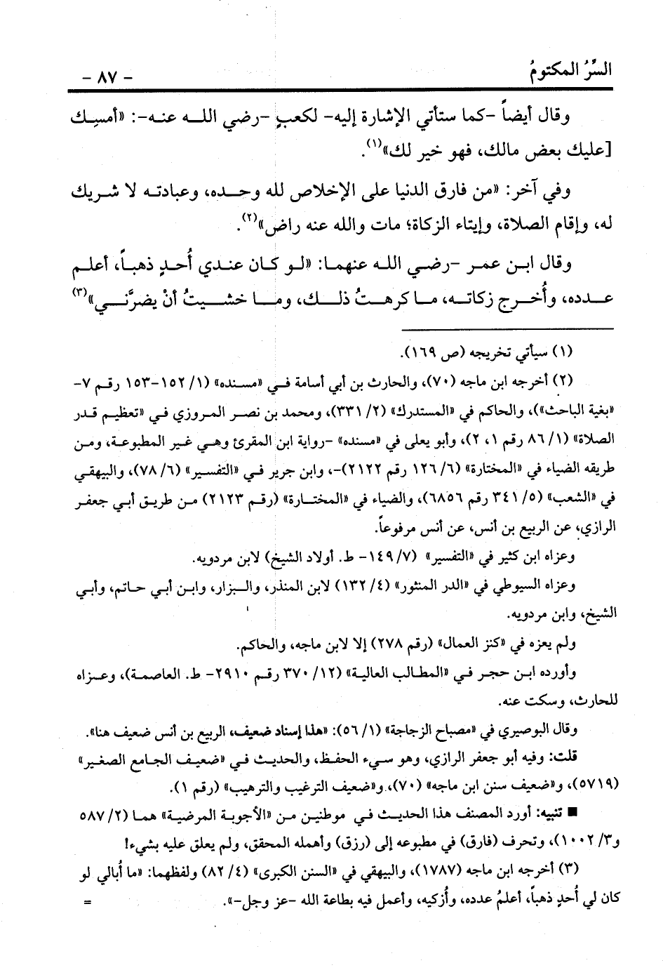 كتاب السر المكتوم في الفرق بين المالين المحمود والمذموم