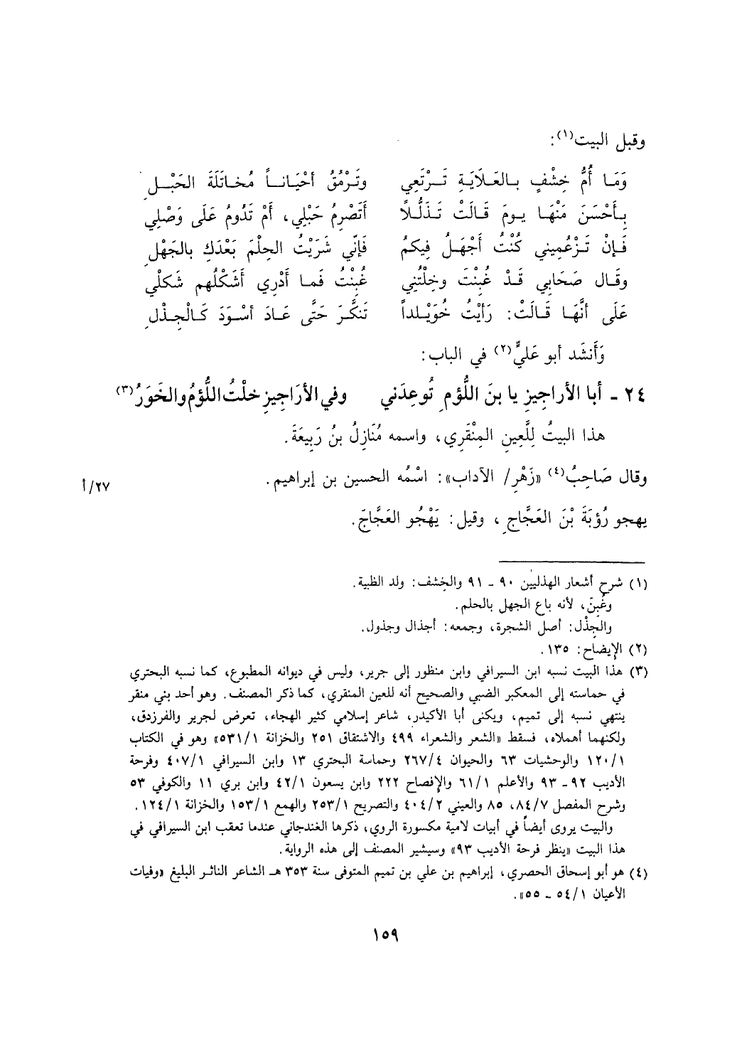 أبا الأراجيز يا بن اللَّؤمِ توعدني ... وفي الأراجيزِ خلتُ اللُّؤمُ والخورُ