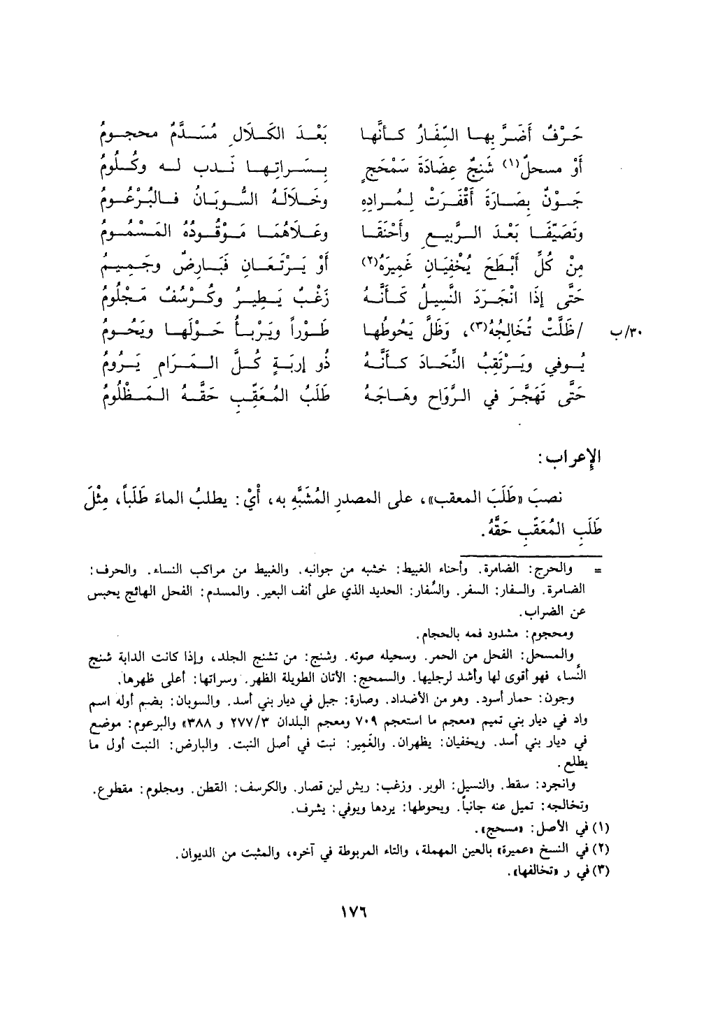 حرفٌ أَضرَّ بها السّفارُ كأنها ... بعدَ الكلالِ مسدَّمٌ محجومُ