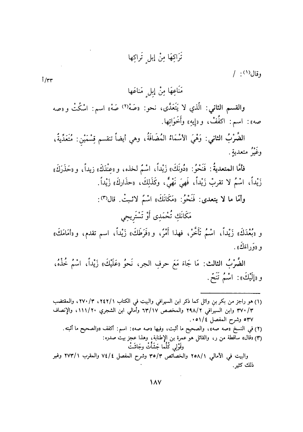 الضرب الثالث: ما جاء مع حرف الجر، نحو"عليك" زيداً، اسم خذه، و"إليك": اسم تنح.