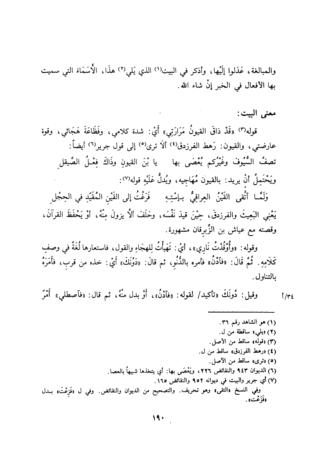 قوله"قد ذاق القيون مرارتي" أي: شدة كلامي، وفظاعة هجائي، وقوة عارضتي، والقيون: رهط الفرزدق ألا ترى إل قول جرير أيضاً: