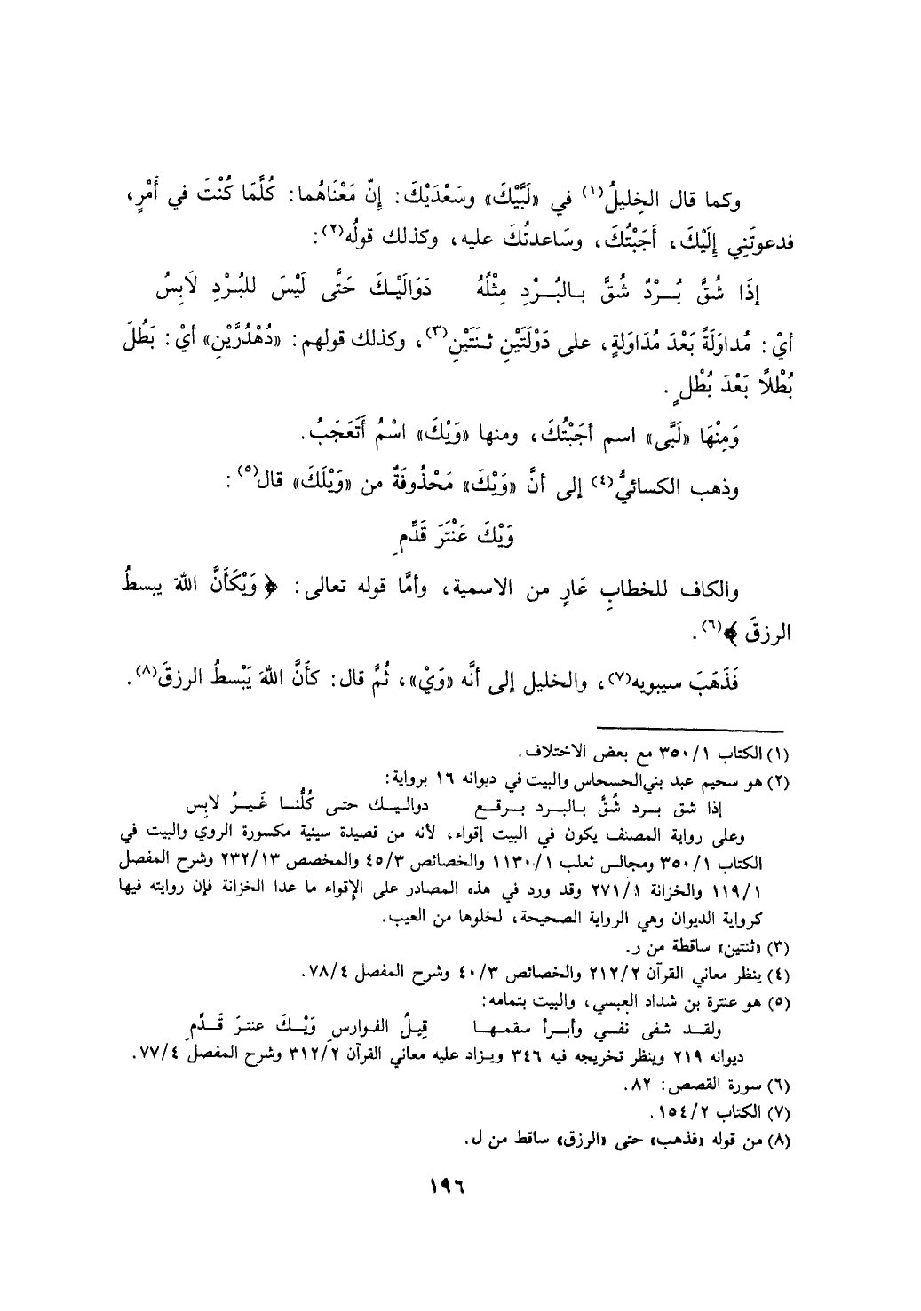 ومنها "لبى" اسم أجبتك، ومنها "ويك" اسم أتعجب.