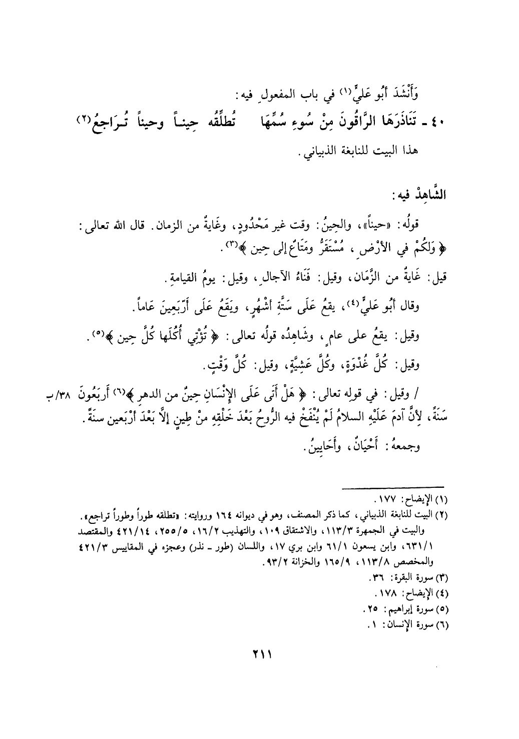 قوله: "حيناً" والحين: وقت غير محدود، وغاية من الزمان، قال الله تعالى: (ولكم في الأرض، مستقر ومتاع إلى حين) .