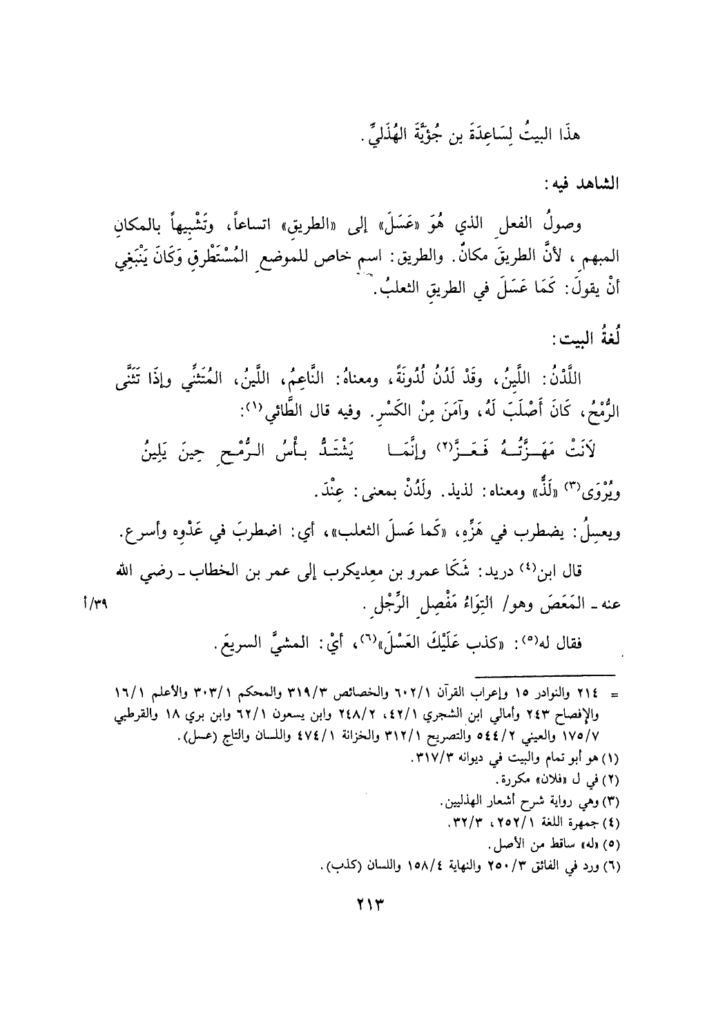 وصول الفعل الذي هو "عسل" إلى "الطريق" اتساعاً، وتشبيهاً بالمكان المبهم، لأن الطريق مكان، والطريق: اسم خاص للموضع المستطرق وكان ينبغي أن يقول: كما عسل في الطريق الثعلب.