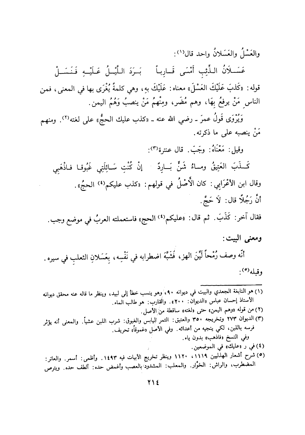 وقال ابن الإعرابي: كان الأصل في قولهم: "كذب عليكم الحج".