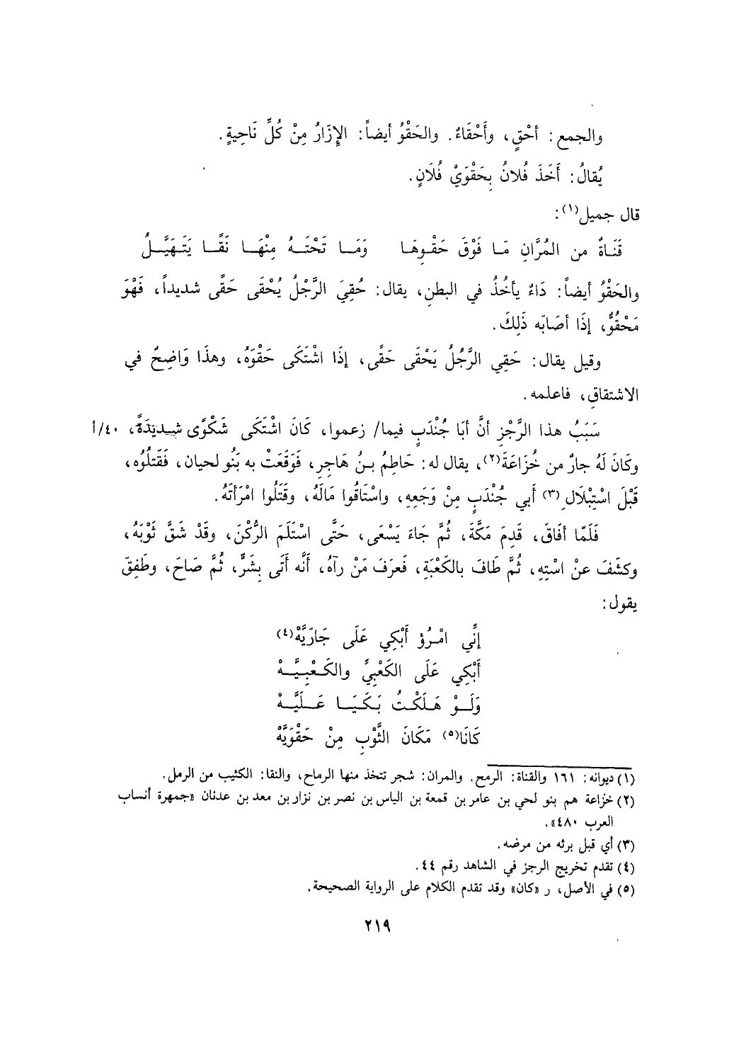 وقيل يقال: حقي الرجل يحقى حقى، إذا اشتكى حقوه، وهذا واضح في الاشتقاق، فاعلمه.