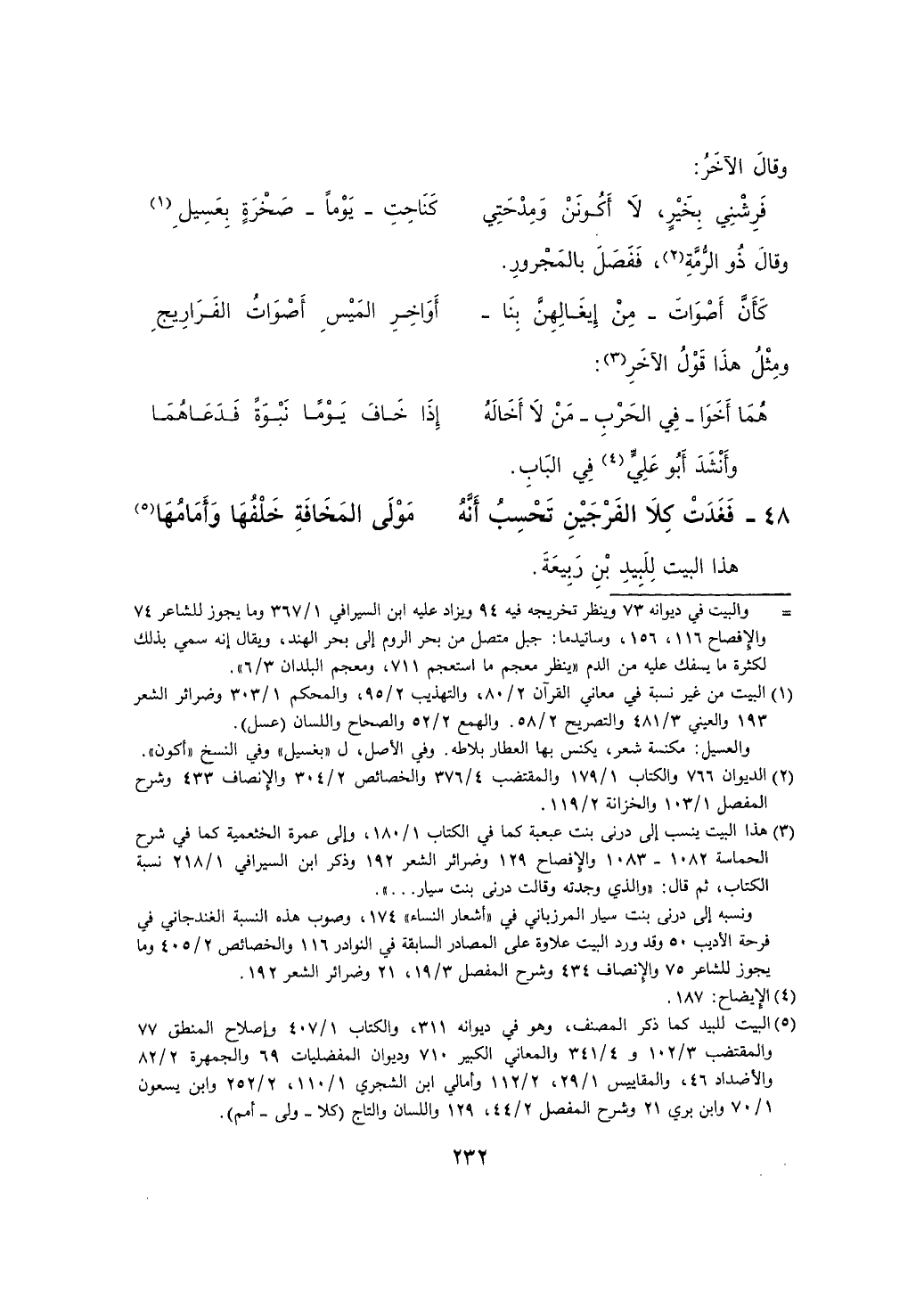 فغدتْ كلاَ الفرجينِ تحسبُ أنَّهُ ... مولى المخافةِ خلفها وأمامها