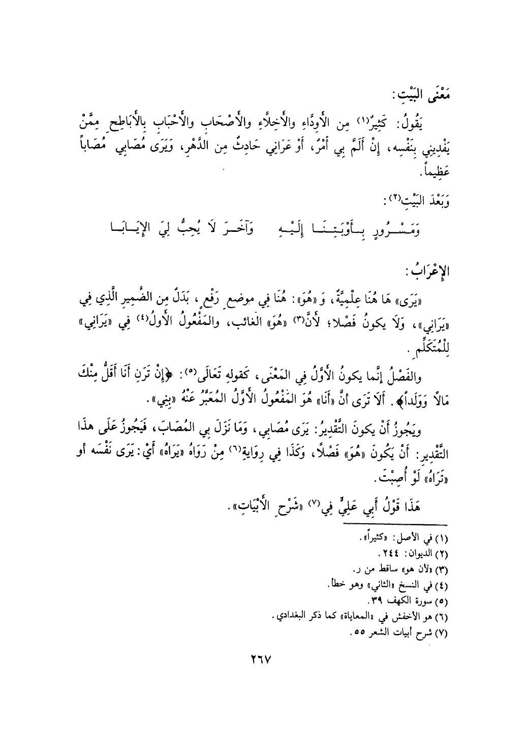 ويجوز أن يكون التقدير: يرى مصابي، وما نزل بي المصاب، فيجوز على هذا التقدير: أن يكون "هو" فصلاً، وكذا في رواية من رواه "يراه" أي: يرى نفسه أو "تراه" لو أصبت.